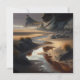 "Capture the Essence of New Zealand: Immerse yourself in the serene beauty of the South Island's rugged coastline with this captivating image. Bathed in the golden glow of a sunset, the sandy beach unfolds before your eyes, adorned with dark rocks and hues of brown sand. A gentle stream meanders through the landscape, its path leading gracefully to the vast expanse of the ocean. As warm sunlight casts long, enchanting shadows across the scene, you'll feel transported to a tranquil oasis of natural wonder. Perfect for those who yearn to bring the breathtaking landscapes of New Zealand into their home."