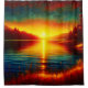 This vibrant artwork captures the serene beauty of a sunset over a body of water. The sky is ablaze with reds, oranges, and yellows, blending into blues and greens, creating a stunning visual contrast. Silhouettes of trees and grass in the foreground add depth and interest to the scene. The reflection of the sunset on the water enhances the overall tranquillity and beauty of the landscape, making this piece a perfect addition to any space that seeks to bring the outdoors inside.