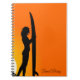 Parfait pour un carnet de voyage ou un journal de voyage avec un design cool de la silhouette d'une fille surfeur tenant sa planche de surf contre un coucher de soleil orange vif. Cette plage, d'inspiration été, est lumineuse et dynamique et pour les amateurs de surf et de la vie de plage partout dans le monde.