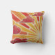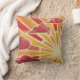 A gold and orange sun sets and the wind blows red and pink clouds across the sky. Throw pillow with a gold, orange, red, pink and white customizable design for you to personalise with your own text, images and ideas. An original coloured pencil and metallic ink drawing by Jess Perry.
