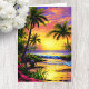 Tropical birthday card with a spectacular sunset, palm trees, and ocean waves. Personalize with your own saying if you would like.