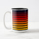 Multicolor striped design inspired by a sunset. Minimalist design in dark blue, and different shades of pink, red, orange, and yellow.