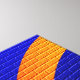 Sun Graffiti brick wall is a digital work of art with a dark blue gradient background and yellow redish orange gradient sun at the bottom, sun beams beaming up and outward.