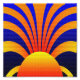 Sun Graffiti brick wall is a digital work of art with a dark blue gradient background and yellow redish orange gradient sun at the bottom, sun beams beaming up and outward.