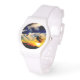 A watch featuring a photo of a sunset.