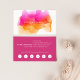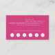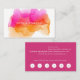 Chic watercolor business cards feature your name or company name layered on a blooming inkblot illustration in bright, colourful sunset hues of fuchsia pink ad goldenrod. Add your full contact information to the back in white on magenta. Includes your custom loyalty offer (shown with "enjoy 20% off any service after five visits"), and six punchouts.