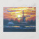 Holland sunset/ sunrise windmill rural landscape fine art painting print postcard with Dutch windmill and colourful orange yellow sky nature impressionism painting artwork card.