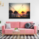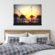 Sunset with palm trees and trampoline canvas print