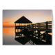 A pier and gazebo are silhouetted and reflected with the sun setting over Currituck Sound.