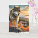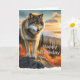This birthday card showcases a watercolor illustration of a wolf on a rock, set against a backdrop of a beautiful sunset. This customizable template allows for easy editing of both the image and the internal greeting. Furthermore, the artwork can be applied to other product designs. This greeting card is ideal for men and boys who appreciate nature and wildlife. "AI-generated artwork with design direction by Susang6"
