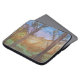 The fiery, golden light of sunset filters through the forest trees. The blue sky fades as dusk falls. The soft pastel colours of the hills and trees in this woodland watercolor design capture that hushed moment just before the advent of the night.