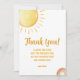 Celebrate the warmth and joy that your little one brought into your life with this "Here Comes the Sun Boho Sunshine Thank You Invitation." Embrace the bohemian vibes and retro charm as you express your gratitude. The sun-inspired design and vibrant colours bring a sense of happiness and playfulness to your baby shower thank you cards. With a modern twist on a classic theme, these thank you cards are the perfect way to extend your appreciation to your guests who made your special day even brighter.