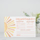 This horizontal Baby Predictions & Advice card features a bright and cheerful sun-themed design. On the left side, a big sun with warm rays in classic shades of yellow and orange adds a joyful, gender-neutral touch. On the right, guests are invited to fill in their best guesses for baby’s arrival, including date, time, weight, eye color, hair color, and who the baby will resemble.