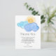 This cute boy's baby shower thank you postcard is decorated with watercolor clouds and the sun.