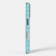 Cute phone case with a happy yellow sunshine peeking out from a big blue cloud with a template below to add your name, quote, text or delete to leave blank. The background is a light blue colour with a white grid.