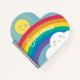 Make someone smile with this adorable heart shaped notebook. It features and original little em illustration of a smiling sun and cloud and a bright rainbow.