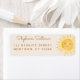 Cette jolie étiquette d'adresse de retour baby shower est décorée d'une aquarelle soleil stylisée typographie sur un arrière - plan crème douce. Facile à personnaliser. Aquarelle originale © Michele Davies.