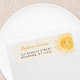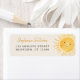 Cette étiquette d'adresse de retour de baby shower sur le thème du soleil présente un joli soleil souriant jaune et une typographie élégante sur un arrière - plan crème douce. Facile à personnaliser. Aquarelle originale © Michele Davies.