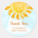 These Baby Shower Thank You Stickers are decorated with a yellow watercolor sun and blue sky.