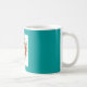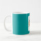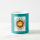 Basic mug decorated with the "Sunny Daydreams" design.  Design is surrounded by a peacock background and trimmed in a yellow orange border