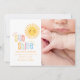 Introducing our ray of sunshine modern photo birth announcement. Yellow rainbow illustration typography design. Part of a collection.