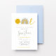 This first birthday invitation features a quirky pastel blue and mustard rainbow with complimenting sun and an elegant script font. This is the perfect birthday invite for your bohemian, summer, or garden celebration.