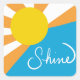 Sunshine Rays of Happiness by @ Cathy Thompson. Big bursting sun with the positive words "Shine" on the front. Colours are orange, blue and white.