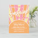 Retro Sunburst A Little Ray Of Sunshine Baby Shower Invitation for Baby Girl Pink Orange Yellow.