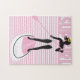 A cute stand up paddle board photo puzzle design just for girls. A silhouette of a girl on a paddleboard against a background of pink stripes and wavy lines is just right for any water girl who loves the sport of paddling. Customize it – add a name!