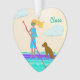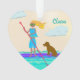 Photo personnalisée ornement de Noël en forme de coeur et de pagaie. Image illustrée d'une fille avec son chien et son nom de modèle sur le devant. Ajoutez une photo à l'envers, ou allez dans la zone "personnaliser" et supprimez l'échantillon de photo pour laisser la couleur bleue marine solide arrière. Le design sympa aux couleurs tropicales est un original que l'on trouve seulement dans mes magasins.