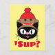 'Sup? Sock Monkey Hat Cartoon Cat Humourous Postcard by AaronDesignsUS.