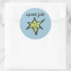Sticker rond avec étoile dans le style esquissé et les mots "Super emploi!" Donnez à un enfant pour une récompense amusante ou l'utiliser pour encourager un enfant.