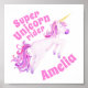 Jolie super cavalier de licorne avec votre nom personnalisé en rose affiche d'art fantaisiste aquarelle. Idéal pour un cadeau personnalisé pour une fille qui aime les licornes. Peinture et conception uniques aquarelle fantaisiste par Sarah Trett www.sarahtrett.com pour www.mylittleeden.com