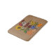 Bath Mat bathroom amenity and home furnishing decor accessory with Super Cute Scarecrow artwork design illustration by TheFabricSeal at Zazzle.com. Fall Season, Thanksgiving and Halloween are all great times of the year. This adorable whimsical drawing with a super cute scarecrow with a silly grin, pumpkins and sunflowers was a lot of fun to create. The scarecrow has a wonky orangish red baseball hat, brown sweater, blue pants, straw hair, hands, feet and body. Gorgeous yellow sunflowers with their delicious sunflower seeds growing on tall flower plant green vines and leaves plus several yummy looking orange pumpkins complete this fun and whimsical farm scene.