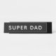 Classic black and white "Super Dad" desk name plate. Makes a great father's day gift! Can be fully personalized with your custom text and colours.