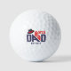 Modern, trendy typography golf ball for dads. Design features typography script ''super dad'' in navy & red and year established.