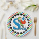 The super hero boy turning four years old will love this colourful, fun super hero boy design paper plate as an addition to his birthday celebration! Features a super hero in green with a green mask and red cape, bright blue text that reads 4 is Super, and a border with a decorative black ring and stripes of red, white, blue, and bright green!