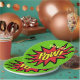 These colourful fun paper plates are perfect for any Super Hero or Super Hero fan! They are featured in bright lime green with the word POW! in yellow surrounded by a red burst. Your name is featured in yellow along the top of the burst when added in the box provided on your screen. Select Customize to change the background colour.