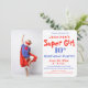 Un super héros amusant (Super Girl - Super Boy) Invitation de fête d'anniversaire en rouge avec des couleurs bleu et blanc, des étoiles et des lettres audacieuses. Pour personnaliser avec la Photo de votre enfant, insérez simplement votre image en utilisant notre modèle; cliquez sur : FIT, puis déplacez-vous à gauche. Insérez ensuite les détails de votre parti dans notre modèle en remplaçant l'exemple de texte. C'est rapide et facile.