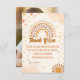 Cette carte de remerciement d'inspiration boho présente une esthétique chaude et terreuse avec des textures d'aquarelle douce et une palette de couleurs neutres. Au centre, un arc-en-ciel bohème joliment illustré dans les tons marron, orange et beige apporte une touche rétro charmante. Autour de la conception sont des éléments floraux délicats, y compris des petites marguerites et un tournesol souriant et souriant, ce qui renforce l'atmosphère fantaisiste et joyeuse.
