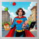 “Super Mom”Retro comic-book style_ Mom in a cape juggling groceries.