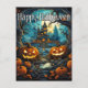 This creative Happy Halloween postcard features an illustration of a pair of spooky looking pumpkins, in the dark, deep in the forest. Please feel free to adjust all the available options as you wish.