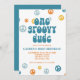 Super One Retro a inspiré l'invitation de premier anniversaire avec des polices et des couleurs de style années 70.