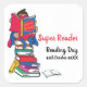 Super reader boy on books reading day square sticker