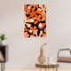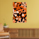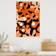Forme libre formes super rappelant les années 60 et les années 70 dans une palette de couleurs orange, noir et blanc.
