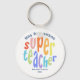 The perfect keychain for teacher appreciation day. This fun and bright typography design can be personalized with a custom name and message. Which super teacher will you gift this to?