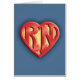 Superhero emblem for nurses; a heart-shaped border with "RN" lettering. Red/yellow graphic, on t-shirts, sweatshirts, cards, gifts.