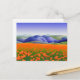 Scenic floral landscape postcard features an AI generated digital watercolor regaling the California poppy and wildflower superblooms.