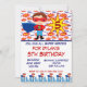 Appel à tous les Superheroes Anniversaire de enfant Party Invitation modèle pour une fête d'anniversaire garçon. Ces Super Hero Invitations mignonnes ont un garçon super-héros avec une cape bleue et un masque de l'oeil rouge avec un "S" sur sa poitrine pour Superhero. Il a un arrière - plan amusant qui a des mots super-héros comme "Pow" "Zing" "Zap" en rouge, jaune et bleu. Il a aussi l'âge de votre enfant dans un design de rafale d'étoiles. Entrez simplement les informations de fête d'anniversaire de votre enfant dans les spots modèles. Utilisez le bouton customiser si vous souhaitez déplacer des éléments ou modifier les couleurs de la police. Il est affiché en rouge et bleu dans une police de style bande dessinée. Ce sont des invitations parfaites pour une soirée super-héros pour les garçons. L'arrière de l'invitation a également un design super-héros couleur complet.