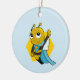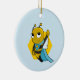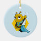 Ornament with an illustration of a cute super hero bee with a cape in action pose, illustration by MaxiHarmony / Radka Kavalcova